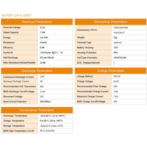 LFP Green Power Li Ion Battery Pack 25.6V 7.2AH LiFePo4 Cell Battery Images |